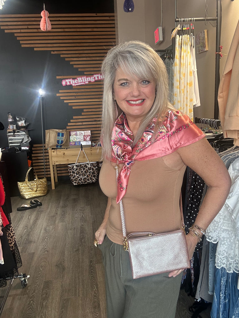 Add a touch of effortless elegance to any outfit with our 35 x 35 scarf. This scarf can be styled so many ways. It looks great as a chic headscarf, wrap it on your handbag, or style it as a wrap around your shoulders.