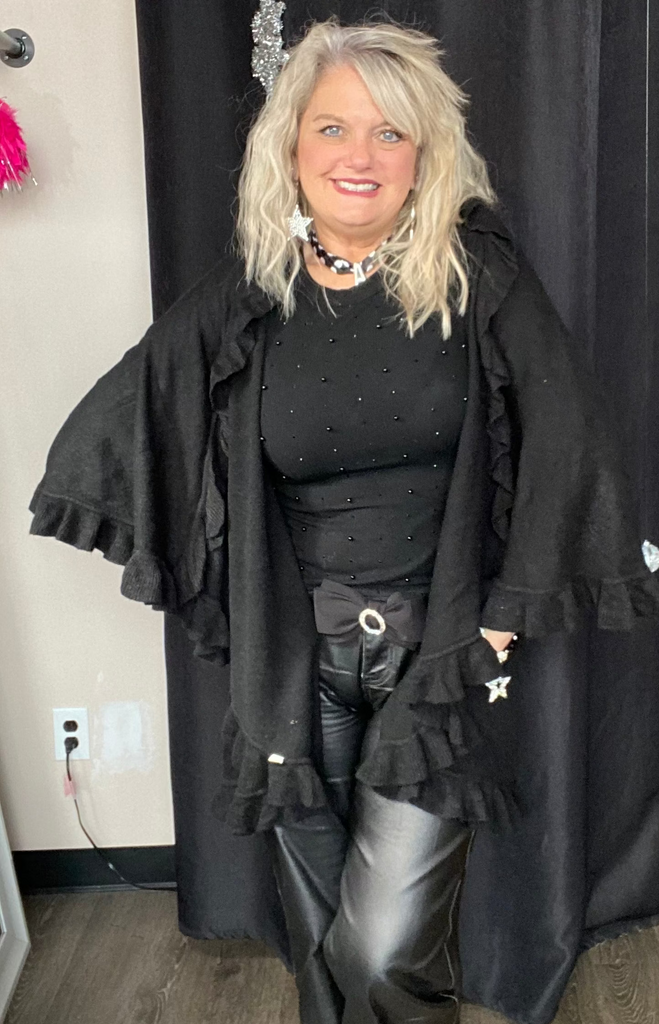Black Sweater with Ruffle Trim