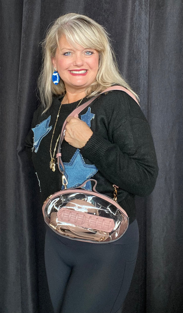Clear Football Cross body Purse with Pink Accents