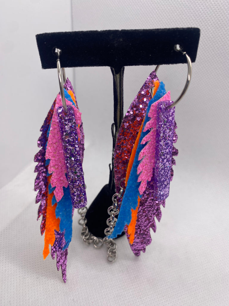 Purple Feathers, Silver Chain, Orange, Blue, Pink