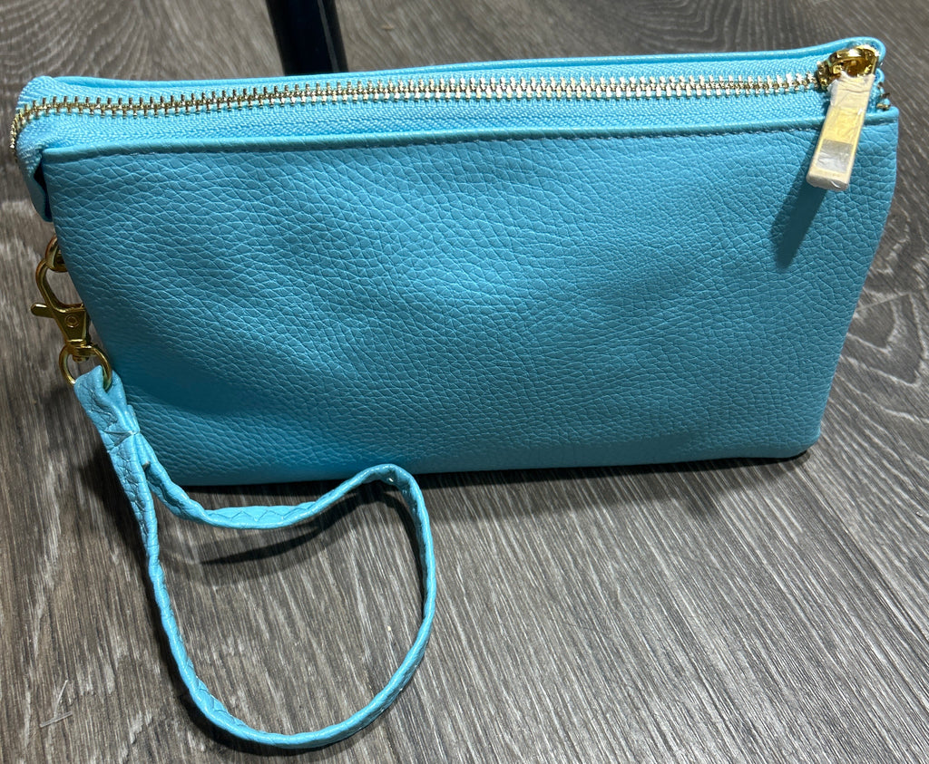 Monogrammable 3 Compartment Crossbody Wristlet Baby Blue