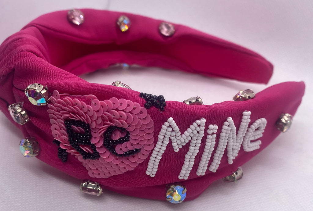 Fuchsia Pink Be Mine Valentines Day Beaded Headband – TheBlingThing.com