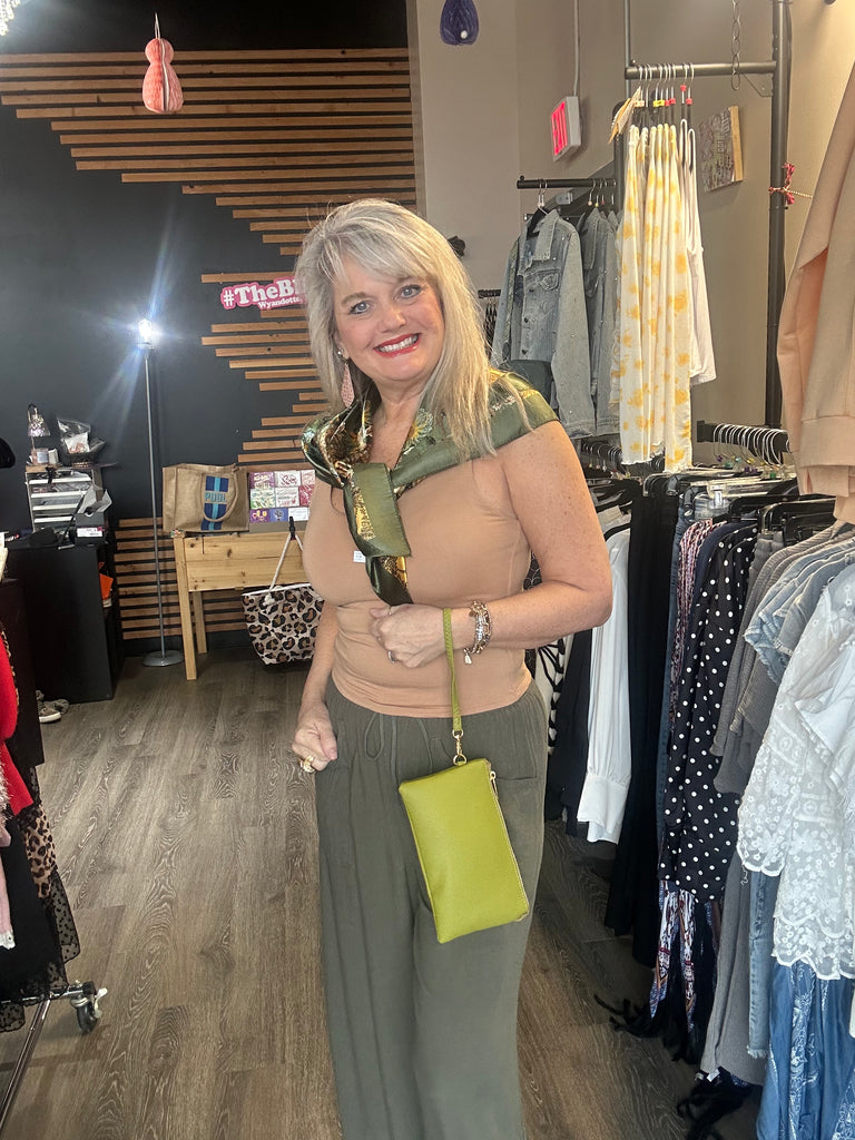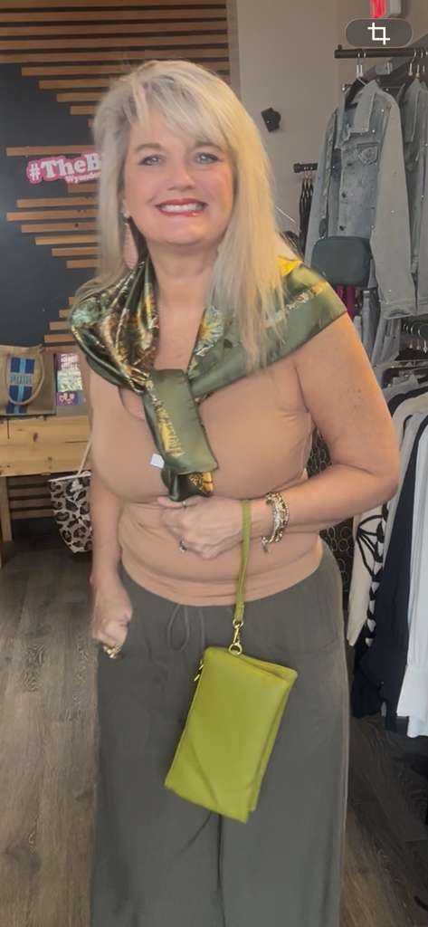 Womens Fashion Silk Scarf 35 x 35 Olive Green Neck Hair Bag Accessory