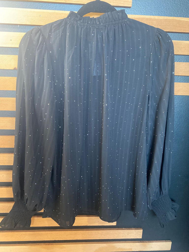 Black Sheer Chiffon Blouse Metallic Dot Print – TheBlingThing.com