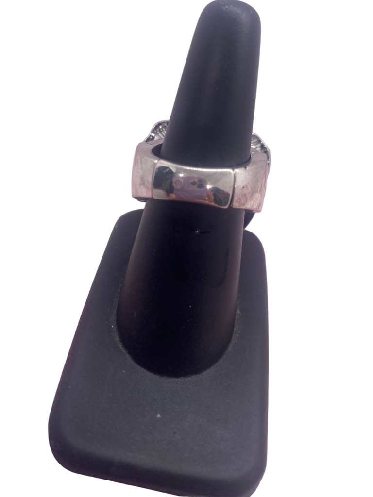 Rosette Flower Silver Tone Stretch Ring